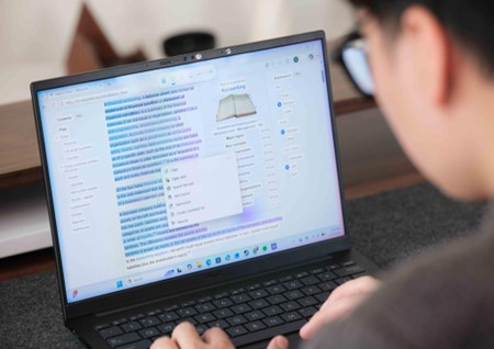 Sự thay đổi này đến từ nền tảng Ryzen AI 400 Series, giúp Zenbook 14 tối ưu hiệu quả năng lượng và sẵn sàng cho các tính năng laptop AI tích hợp trực tiếp trong Windows. Trong sử dụng thực tế, điều này mang lại khác biệt rõ ràng: pin lâu hơn, máy vận hành mát và yên tĩnh hơn khi xử lý các tác vụ văn phòng quen thuộc, phù hợp với nhu cầu làm việc liên tục trong ngày.