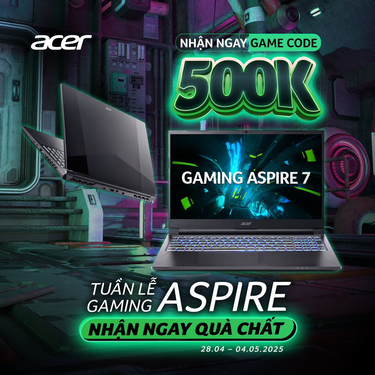 Khách Hàng khi mua các dòng Laptop Gaming Aspire 7 & Gaming Aspire 5 tại Hồng Hà sẽ được đăng ký thông tin để nhận ngay thẻ nạp Game trị giá 500.000 VNĐ.
