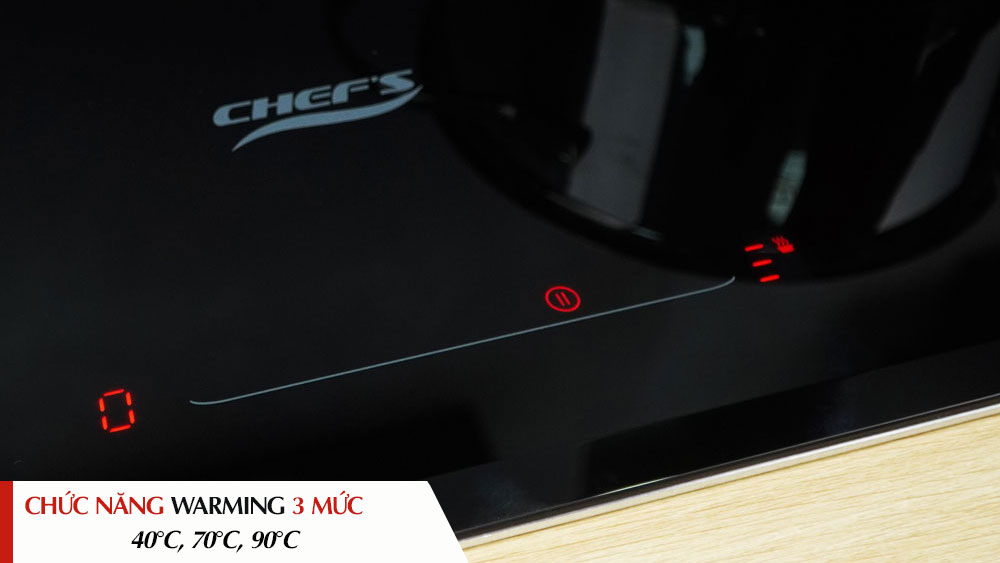 Chức năng hâm nóng warning 3 mức: Bếp duy trì liên tục ở mức nhiệt độ thấp giúp giữ ấm thực phẩm sau khi nấu hoặc hâm lại thức ăn cũ. Thức ăn không bị cháy, giữ nguyên chất dinh dưỡng, tiết kiệm điện, thích hợp cho món ninh, hầm.