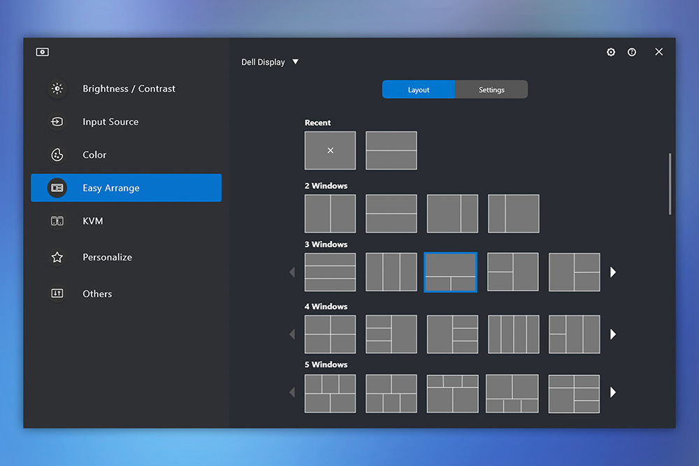 Tính năng Easy Arrange giúp tổ chức cửa sổ một cách hiệu quả, giúp bạn dễ dàng tùy chỉnh và lưu trữ cấu hình màn hình. Ngoài ra, chức năng quản lý từ xa giúp giám sát và điều chỉnh màn hình dễ dàng.