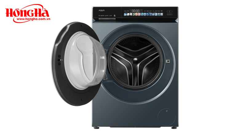 Máy giặt Aqua Inverter sở hữu bảng điều khiển song ngữ Anh - Việt với màn hình cảm ứng nhiều màu sắc, giúp thao tác nhanh chóng, trực quan và tăng tính thẩm mỹ cho tổng thể thiết kế, đồng thời đường kính lồng giặt lớn 525 mm nâng cao hiệu quả giặt, giảm xoắn rối và bảo vệ sợi vải luôn bền đẹp.