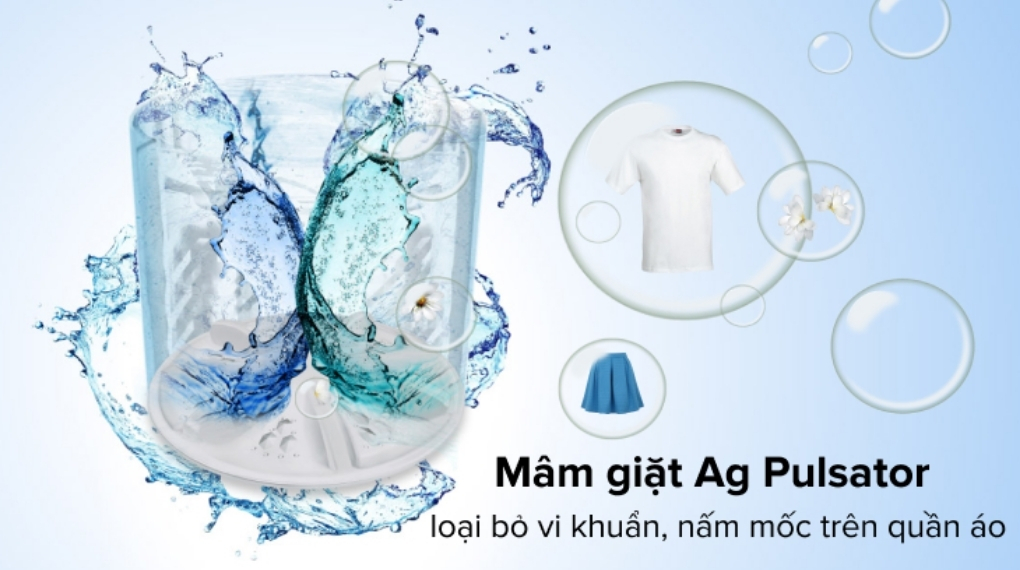 - Mâm giặt Ag Pulsator giúp chống nấm mốc và kháng khuẩn hiệu quả, ngăn chặn sự phát triển của vi khuẩn đảm bảo sức khỏe cho bạn và gia đình.
