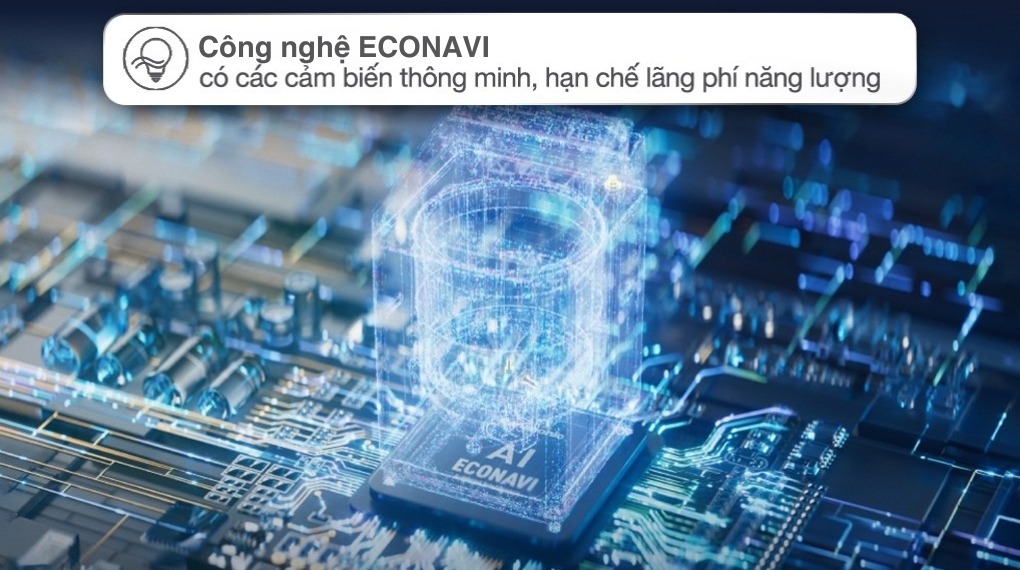 - Máy tích hợp cảm biến Econavi tự động điều chỉnh lượng nước, thời gian giặt để tối ưu hiệu suất giặt sạch và giảm tiêu thụ năng lượng không cần thiết.