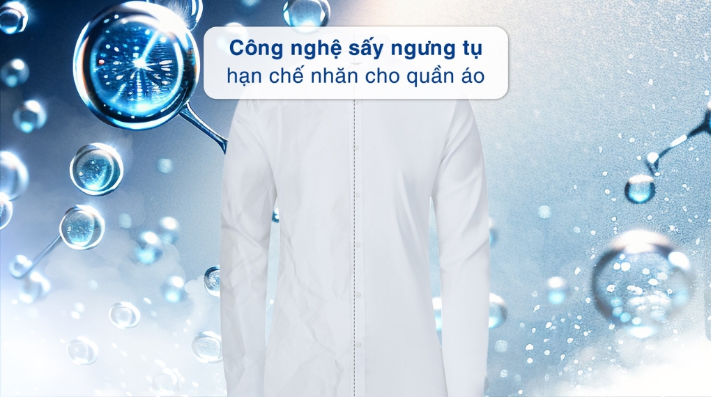 - Tính năng giảm nhăn khi sấy hỗ trợ quần áo phẳng phiu hơn, tiết kiệm công sức là ủi. Người dùng cũng có thể tùy chỉnh thời gian sấy theo nhu cầu, linh hoạt với các loại vải mỏng, dày khác nhau hoặc khi cần sấy gấp.