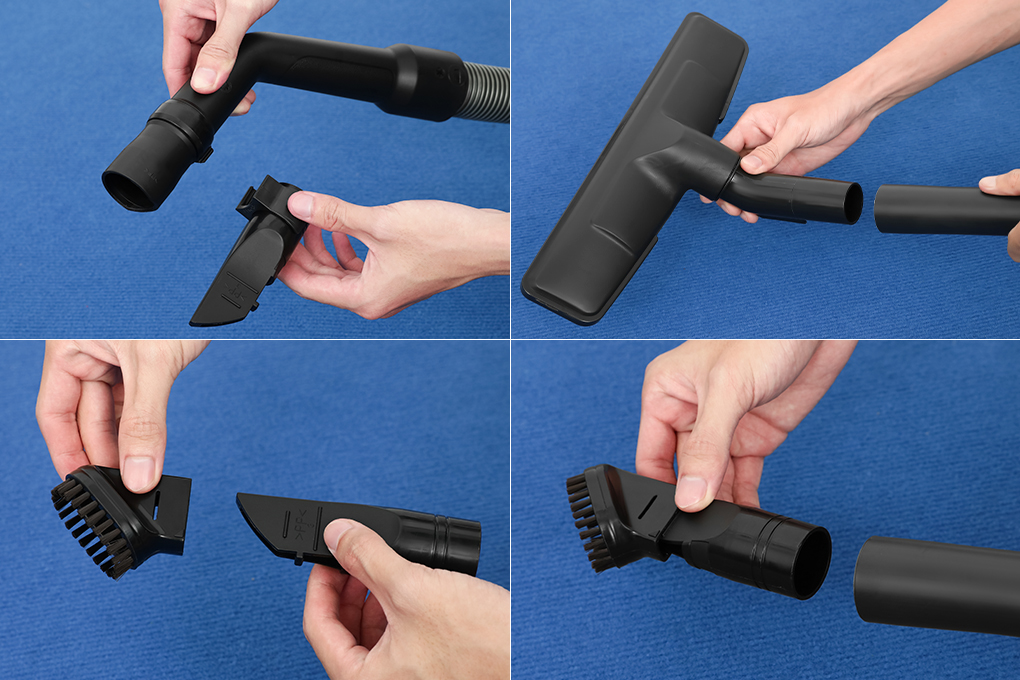 - Tiện lợi trong việc vệ sinh nhiều khu vực khác nhau với đầu hút chuyên biệt, có 3 loại đầu hút bao gồm: