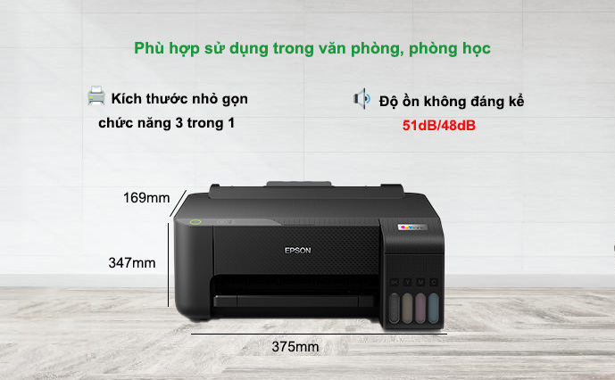 Máy in phun Epson L1210 nhỏ gọn và kiểu dáng đẹp, phù hợp với không gian của văn phòng của bạn. Được áp dụng công nghệ in mới hơn, hiện đại hơn giúp bạn tận hưởng khả năng in vượt trội hơn với chi phí thấp hơn, hỗ trợ in ấn tốt hơn so với dòng máy tiền nhiệm dù là công việc hay sử dụng cá nhân giúp máy phù hợp với mọi đối tượng khách hàng thuộc nhiều lĩnh vực như văn phòng doanh nghiệp, cơ quan công sở đến cửa hàng dịch vụ hay cá nhân sử dụng tại nhà để làm việc và học tập.