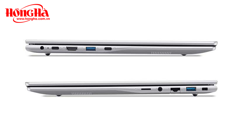 Các cổng kết nối được bố trí dọc hai bên sườn máy, tạo điều kiện thuận tiện cho việc kết nối ngoại vi trong các môi trường làm việc khác nhau. Máy trang bị hai cổng USB Type-C, ba cổng USB-A để kết nối thiết bị lưu trữ truyền thống, một cổng HDMI 1.4 phục vụ trình chiếu lên màn hình lớn, cùng với jack âm thanh 3.5mm và đầu đọc thẻ nhớ tích hợp.