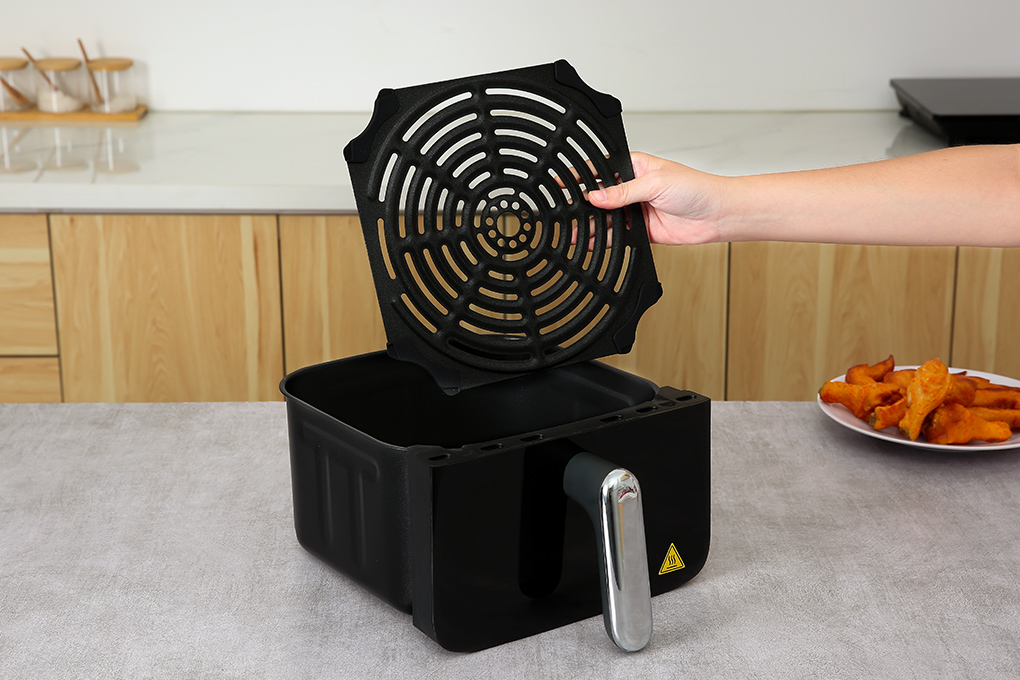 - Trong quá trình sử dụng, nồi chiên không dầu sẽ tự động ngắt khi kéo lòng nồi ra và tự hoạt động lại khi đẩy lòng nồi vào.