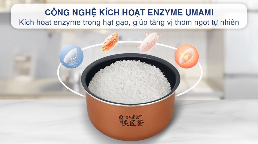 - Đặc biệt, sản phẩm còn được ứng dụng công nghệ kích hoạt Enzyme Umami: nhiệt độ được kiểm soát trong khoảng 60 - 70°C để phá vỡ cấu trúc tinh bột, kích hoạt tối đa Enzyme, làm tăng vị ngọt tự nhiên lên đến 20 - 30%.