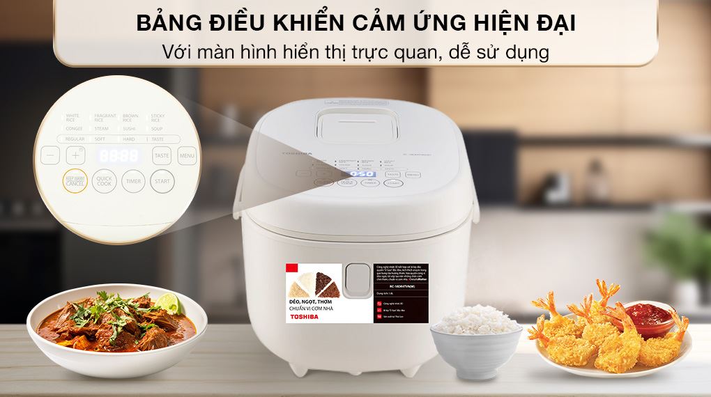 - Nồi cơm điện Toshiba có màn hình LED cảm ứng nhạy và thông minh, người dùng có thể dễ dàng thao tác.
