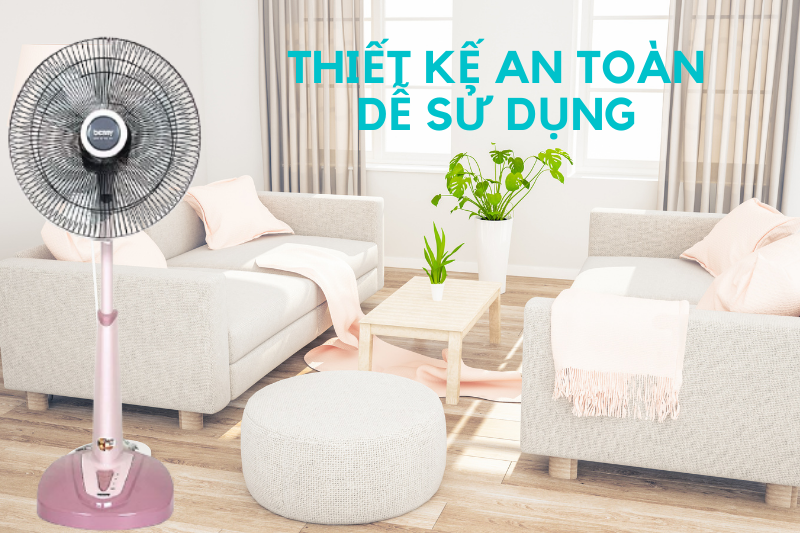 Thân quạt làm bằng nhựa cao cấp tạo độ bền cho sản phẩm, túp năng phía sau giúp người dùng điều chỉnh được luồng gió một cách tiện lợi, đế quạt thiết kế chắc chắn và có các nút điều chỉnh mức gió từ thấp tới cao, động cơ tự ngắt giúp bạn luôn an tâm khi sử dụng sản phẩm.