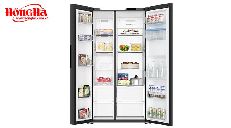 - Kiểu dáng Side by Side 2 cánh lớn đối xứng, giúp thao tác lấy thực phẩm dễ dàng, đặc biệt khi bảo quản số lượng lớn.