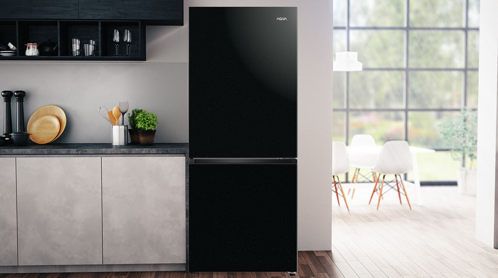 - Aqua AQR-B310MA(FB) có dung tích sử dụng 260 lít, thích hợp dùng bảo quản thực phẩm trong gia đình nhỏ có 2 đến 3 thành viên.