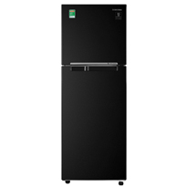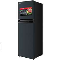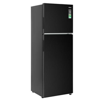 - Chiếc tủ lạnh này có kiểu dáng 2 cánh với ngăn đá trên, lớp vỏ bên ngoài được phủ một màu đen xám khói nhẹ nhàng tăng thêm nét sang trọng và tinh tế trong không gian nội thất.