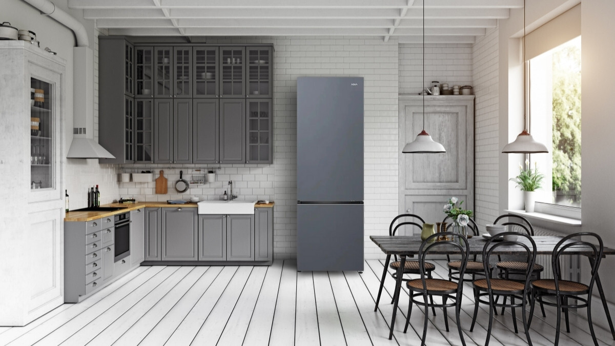 Tủ lạnh Aqua Inverter 324 lít AQR-B390MA(SLB) sở hữu thiết kế phẳng với tông màu đen xám trung tính nên người dùng có thể kết hợp cùng nhiều không gian phòng bếp, đặc biệt phù hợp với những ai yêu thích phong cách minimalism (tối giản). Hơn nữa cửa tủ mặt thép bền bỉ càng góp phần tăng thêm giá trị cho chiếc tủ lạnh Aqua này.