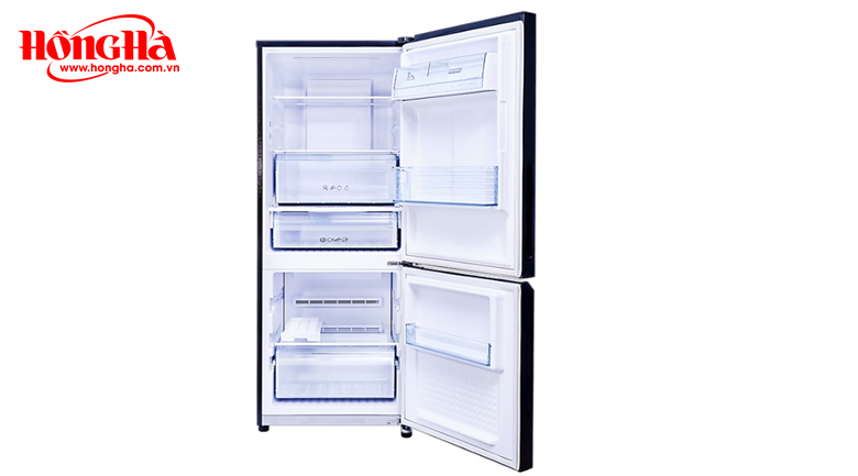 - Tủ lạnh Panasonic 251 lít NR-SP275CPAV mang gam màu xanh đậm, thanh lịch. Bên cạnh đó, thiết kế ngăn đá bên dưới của tủ không chỉ mang lại vẻ đẹp mới mẻ, sang trọng cho không gian nội thất mà nó còn mang lại sự tiện lợi, giúp người sử dụng có thể dễ dàng lấy thực phẩm ở ngăn mát mà không phải khom cúi nhiều lần.
