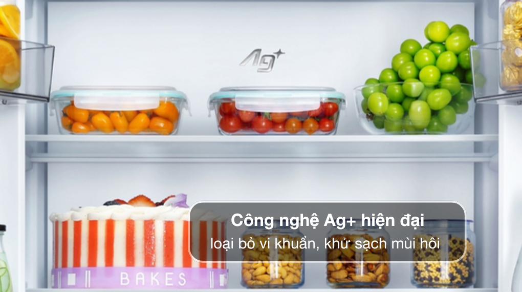 Công nghệ Ag+ loại bỏ vi khuẩn và ngăn ngừa mùi hôi hiệu quả. Đồng thời tránh lẫn mùi giữa các loại thực phẩm trong tủ lạnh, đảm bảo vệ sinh và giữ không gian tủ luôn sạch sẽ.