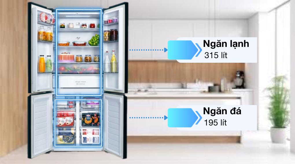 Công nghệ Prime Fresh: ngăn đông mềm Prime Fresh bảo quản thực phẩm tươi sống như thịt, cá mà không làm đông đá. Nhờ đó, thực phẩm giữ được hương vị và kết cấu tươi ngon, đồng thời người dùng có thể chế biến ngay mà không cần rã đông, tiết kiệm thời gian và công sức.