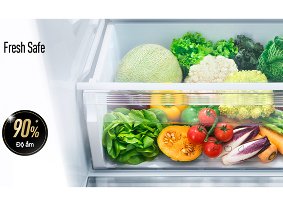 | Rau, củ, quả tươi ngon mọng nước trong ngăn rau quả Fresh Safe Ngăn rau quả Fresh Safe của tủ lạnh với độ ẩm khoảng 90% và luôn duy trì nhiệt độ ổn định giúp cho trái cây, rau tươi xanh, mọng nước như lúc mới mua. |