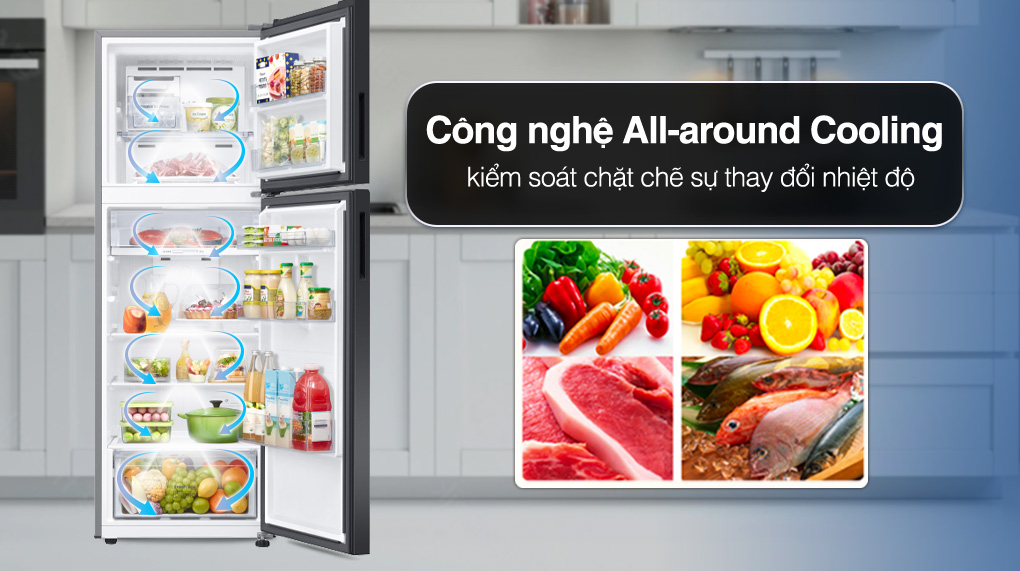 Hệ thống làm lạnh vòm All-around Cooling kiểm soát chặt chẽ sự thay đổi nhiệt độ và luân chuyển hơi lạnh đều đặn thông qua hệ thống lỗ khí bố trí thông minh, duy trì ổn định nhiệt độ và độ ẩm. Không khí lạnh lan tỏa đều khắp tủ, giúp thực phẩm tươi ngon trong thời gian lâu hơn.