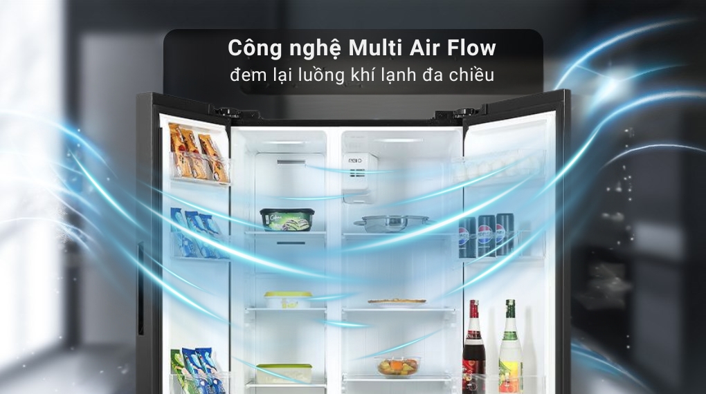- Luồng khí lạnh đa chiều Multi Air Flow: hơi lạnh được tỏa đều khắp tủ, đảm bảo thực phẩm được làm lạnh và cấp đông nhanh chóng, hạn chế tình trạng hơi lạnh không đều gây hư hỏng thực phẩm.