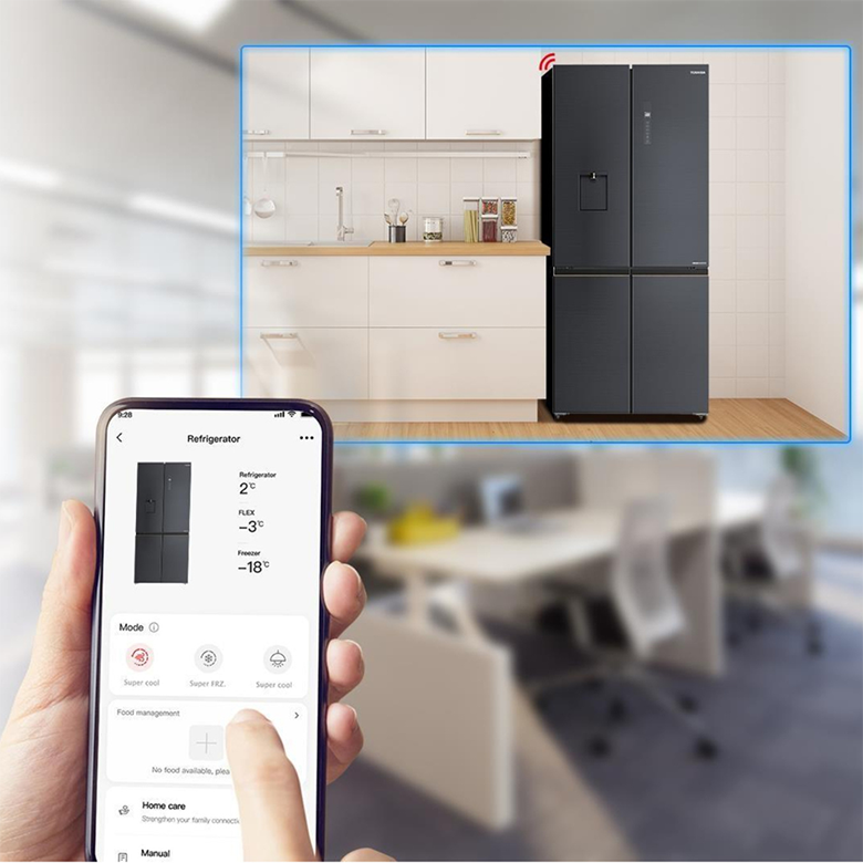 Tủ lạnh Toshiba Inverter 515 lít Multi Door GR-RF675WI-PMV(06)-MG được kết nối Internet thông qua ứng dụng TSmartLife trên điện thoại thông minh cho phép bạn điều khiển tủ lạnh từ xa với nhiều chức năng tiện lợi như: Thay đổi nhiệt độ của ngăn lạnh và ngăn đông; Chọn chế độ của tủ lạnh (Làm lạnh nhanh, Làm đông nhanh, Chế độ tự động).