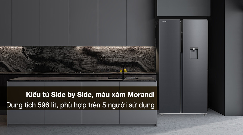 Tủ lạnh Toshiba Inverter 596 lít GR-RS775WI-PMV(06)-MG - Kiểu tủ lạnh Side By Side, màu xám tinh tế, dung tích 596 lít phù hợp cho gia đình trên 5 người sử dụng